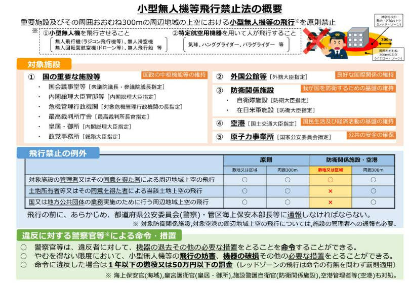 以上が、特定飛行を行うために必須の事項です。 - ○ b.国の重要施設などの周囲を飛行させる場合